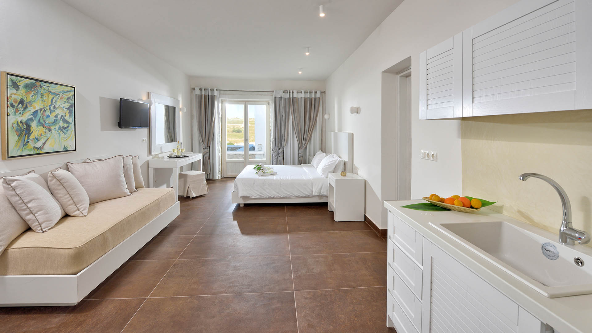With traditionally elegant design, modern furniture, and personalized and professional care, the rooms stand out as a unique accommodation proposal in Mykonos. It can be an ideal choice for small families and groups travelling together, since it may accommodate up to 3 persons.